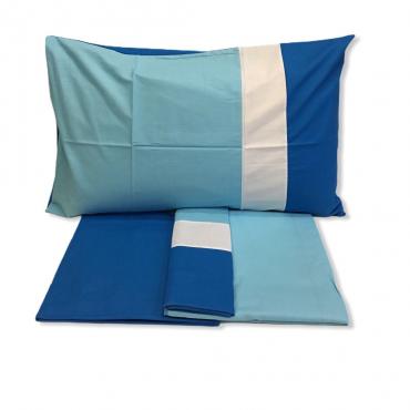 Completo Lenzuola Caleffi Major Blu Matrimoniale Puro Cotone